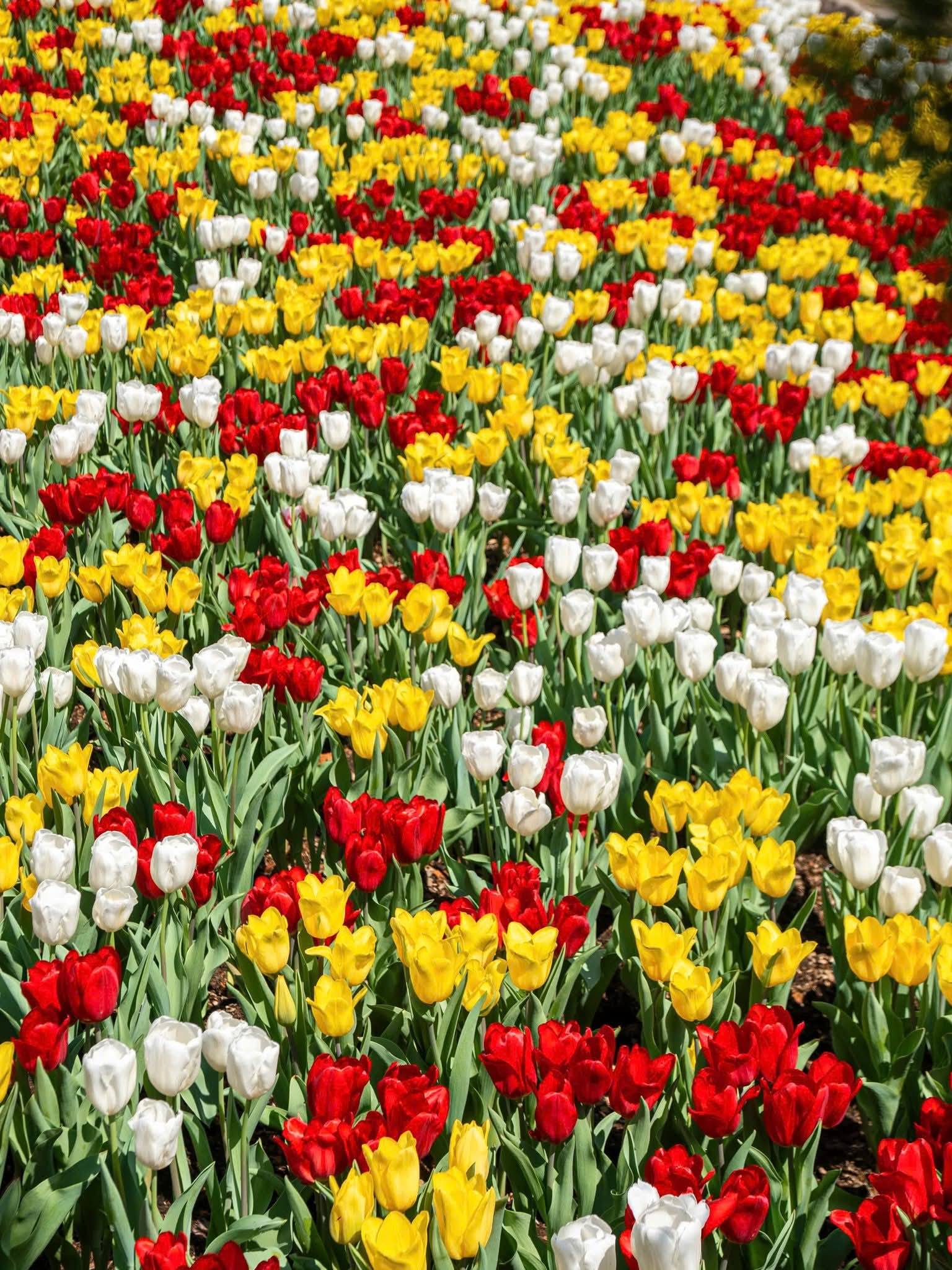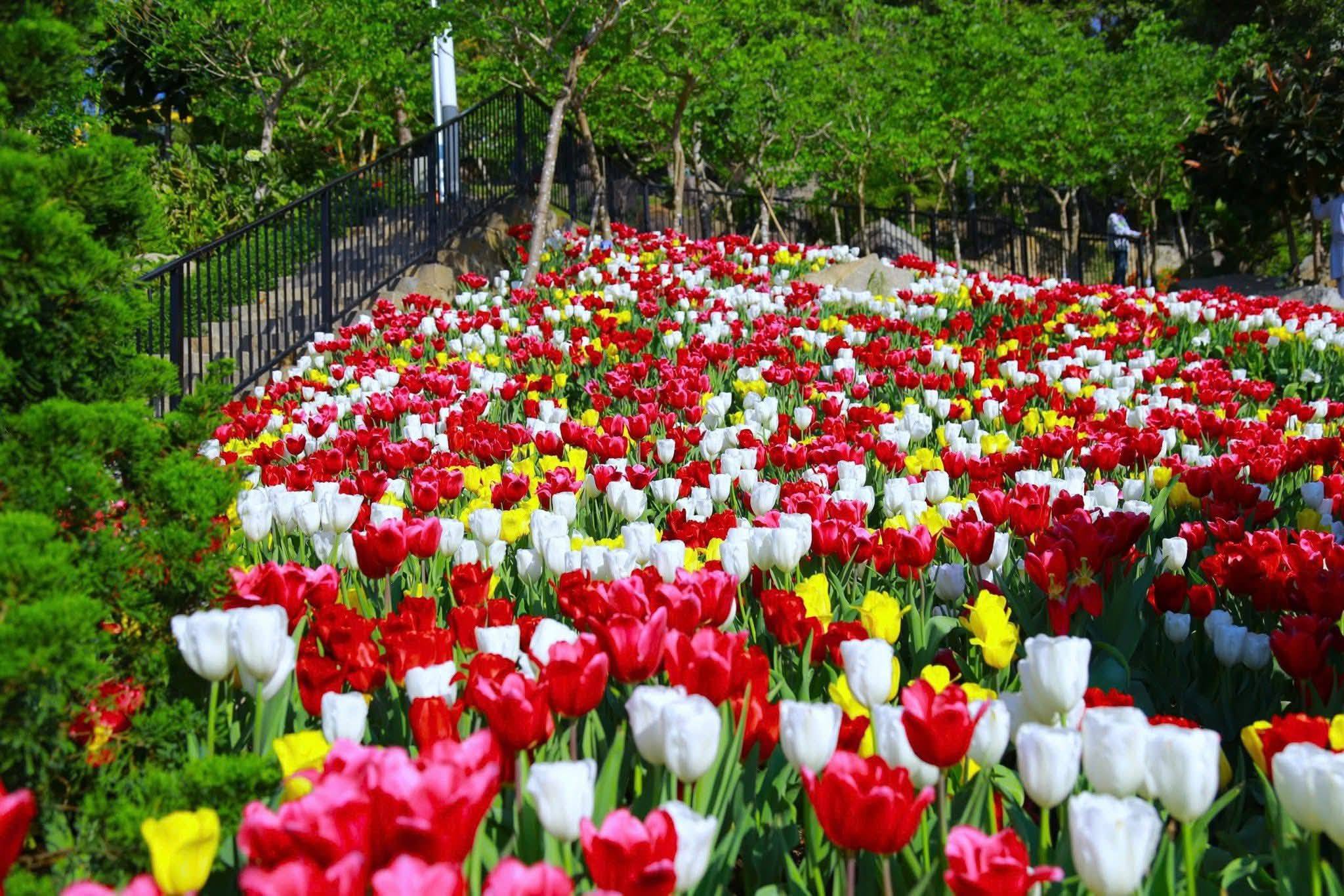 - Vườn tulip trung tâm: diện tích lớn, hoa trồng thành từng thảm màu
